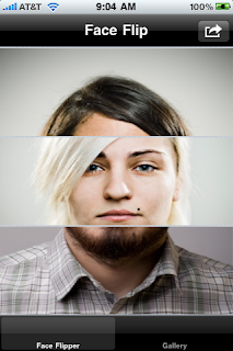 Face Flip is a simple iPhone application that allows you to take your photos and mix and match them with other photos to make crazy faces. You can add photos to the app using the built in iPhone Camera or it will take photos from the iPhone photo album. Once the photos are in the app you can switch to mixer mode and the app will slice the photos into 3 separate parts, Top, middle and bottom. On the mixer mode it will allow you to swipe the different parts, left or right, until you get to a cool combo. Once you find the perfect Face Flip photo you can export the photos from the app, you can either email them to your friends, or save it to iPhone photo album, or both.
